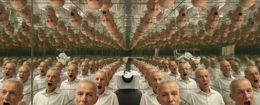 Scheren, Messer, Pinsel, Talgpuder – mehr nicht. Kein Spiegel hinten, nur vorne. Also kein Männerchor. Nur in meiner Vorstellung. Metaphysisches Gruseln? Jawohl. Später sehr wohl.