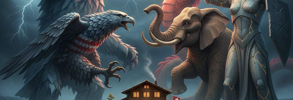 „Guten Abend, meine Damen und Herren. Willkommen zur grossen Abschiedsshow der Schweizer Selbstherrlichkeit. Haben Sie sich heute schon souverän gefühlt? Oder war das nur das kalte Grausen, weil Sie gemerkt haben, dass wir im Jahr 2025 in der Weltpolitik ungefähr so viel zählen wie ein abgelaufener Cumulus-Gutschein?