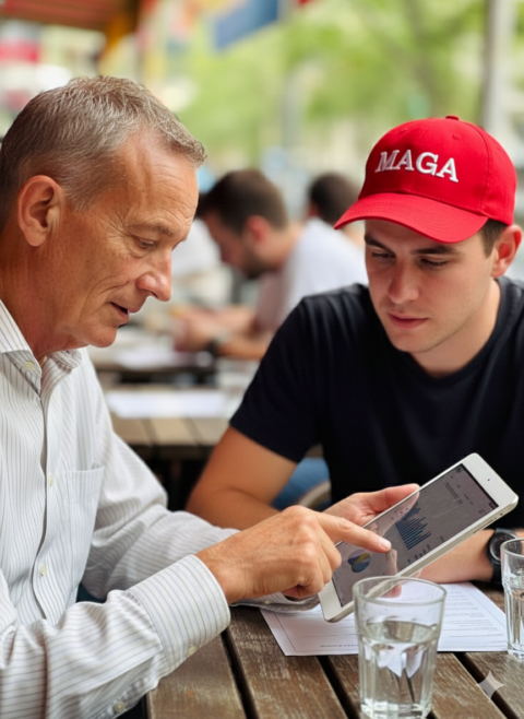 Der junge Mann zeigt mir ein Video mit einer Rede von Trump.„Schau, der Typ bringt’s voll auf den Punkt!“ sagt…